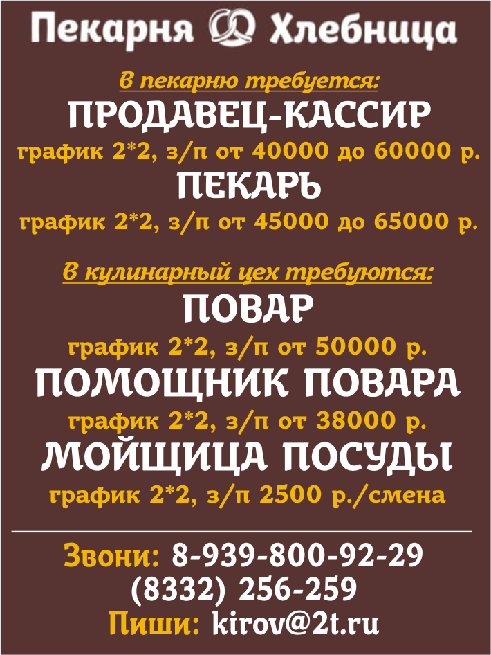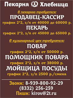 Тел. 246-328, резюме e-mail: kadr@k-kirov.ru