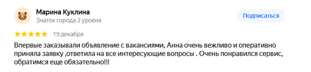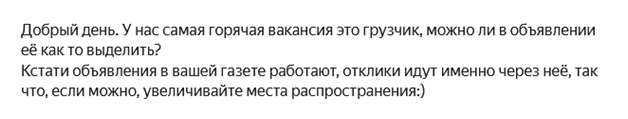 - Обратная связь от кандидатов (многие называют вашу газету как источник информации о нашей вакансии).