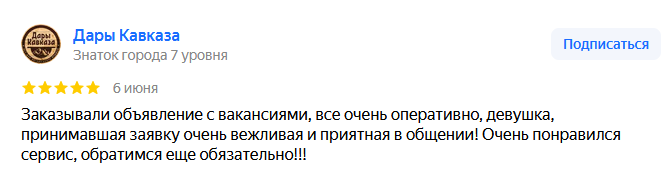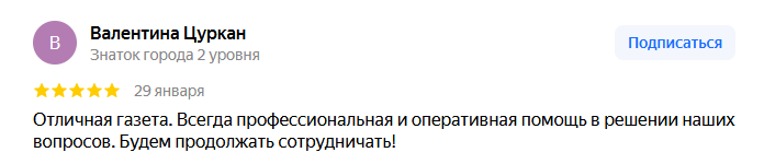 Уровень сервиса оптимален, качество работы издания радует принесенной нам пользой, менеджеры всегда приветливы и внимательны.