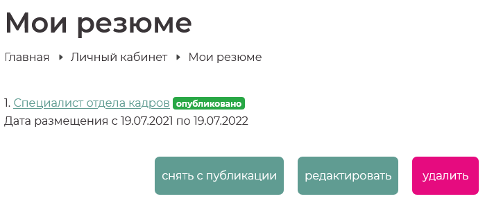 Чтобы разместить резюме на сайте газеты «Рабочие места» нажмите кнопку «Разместить резюме» на главной странице или перейдите по ссылке