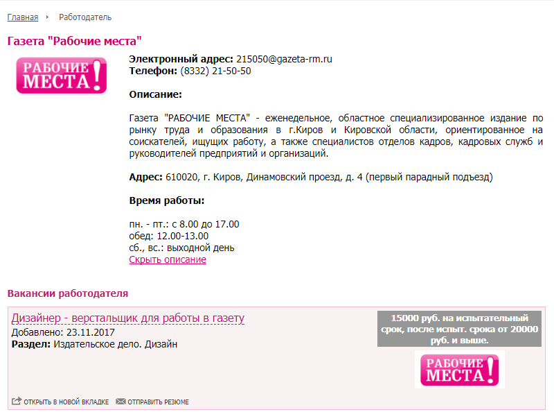 Составьте оригинальное и информативное описание компании на сайте «Рабочие места» и получите еще больше откликов.